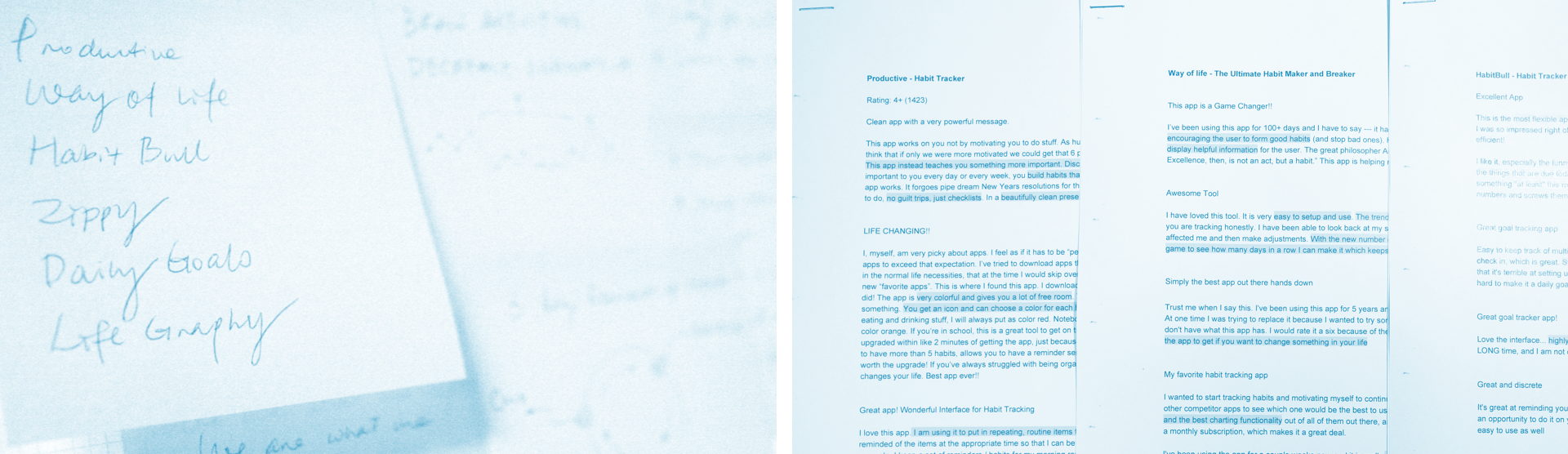 I started with researching most of the applications that rank high in app store and studied their customer reviews in depth. I then interviewed users from various age groups and professions to talk about their feedback and requests in terms of similar products on the market.