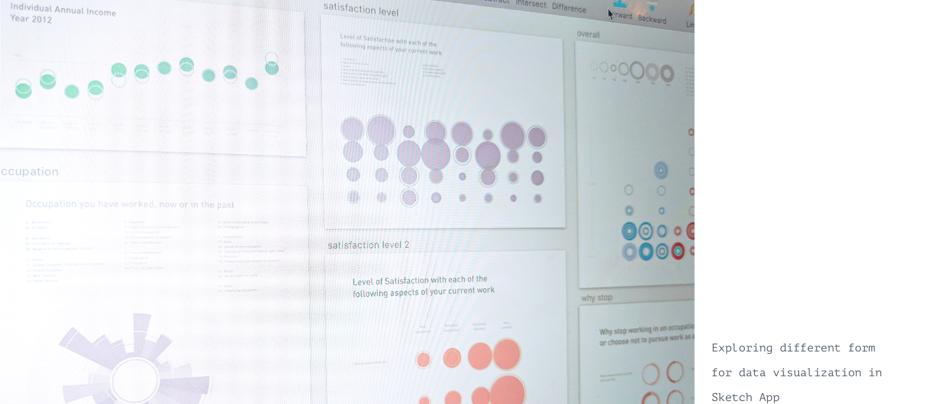 I analyzed the data with the SNAAP research team, distilled the data into a few categories and later developed a visual system which largely reduced the amount of information needs to be processed by the audience.